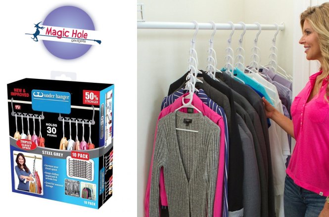 Δυνατότητα εξαργύρωσης της προσφοράς άμεσα είτε με παραλαβή από την έδρα του Magic Hole Υμηττού 110 (VILLAGE CINEMAS Παγκρατίου) στο ισόγειο, Παγκράτι είτε με πανελλαδική αποστολή στο χώρο σας με την αγορά του κουπονιού και έως τις 31/10/2020. Η προσφορά περιλαμβάνει τις επιλογές:   ~7.90€ για σετ 10 τεμαχίων κρεμάστρας σε γκρι χρώμα που διαθέτει θέσεις για 5 κρεμάστρες ρούχων με παραλαβή από το Magic Hole στην Αθήνα.   ~10.90€ για σετ 10 τεμαχίων κρεμάστρας σε γκρι χρώμα που διαθέτει θέσεις για 5 κρεμάστρες ρούχων με δυνατότητα πανελλαδικής αποστολής.   Κάθε κρεμάστρα διαθέτει θέση για 5 κρεμάστρες ρούχων και είναι ανθεκτική σε βάρος έως 9 κιλά.   Μπορει να τοποθετηθεί είτε οριζόντια για όμορφη οργάνωση είτε κάθετα για εξοικονόμηση χώρου έως και 2/3 της ντουλάπας σας.   Μπορεί να δεχθεί κάθε τύπο απλής κρεμάστρας ρούχων: πλαστική, μεταλλική, ξύλινη.   Είναι η ιδανική λύση για μικρά διαμερίσματα που ο χώρος στις ντουλάπες είναι περιορισμένος.   Εξοικονομεί έως και 3 φορές από το χώρο της ντουλάπας, χωρίς να καταστρέφει και να τσαλακώνει τα ρούχα.   Διαστάσεις: Μήκος x Πλάτος x Ύψος: 23x7x10 εκατοστά   Σετ 10 τεμάχια σε Γκρι Χρώμα Παραλαβή του προϊόντος (κατόπιν συνεννοήσεως) στα τηλέφωνα επικοινωνίας εμφανίζονται στο κουπόνι από το κατάστημα Magic Hole Υμηττού 110 (VILLAGE CINEMAS Παγκρατίου) στο ισόγειο, Αθήνα (Δευτέρα, Τετάρτη & Σάββατο 10:00 -14:00, Τρίτη, Πέμπτη & Παρασκευή 10:00 – 14:00 και 17:00 – 20:30).   Για την πανελλαδική αποστολή απαραίτητη η αποστολή email όπου δηλώνετε όνομα παραλήπτη, κωδικό κουπονιού, τηλέφωνο επικοινωνίας και τη διεύθυνση αποστολής.   Μπορούν να αγοραστούν απεριόριστα κουπόνια για προσωπική χρήση και απεριόριστα για συγγενείς και φίλους.   Είναι απαραίτητη η  εκτύπωση του κουπονιού και προσκόμιση κατά την παραλαβή.